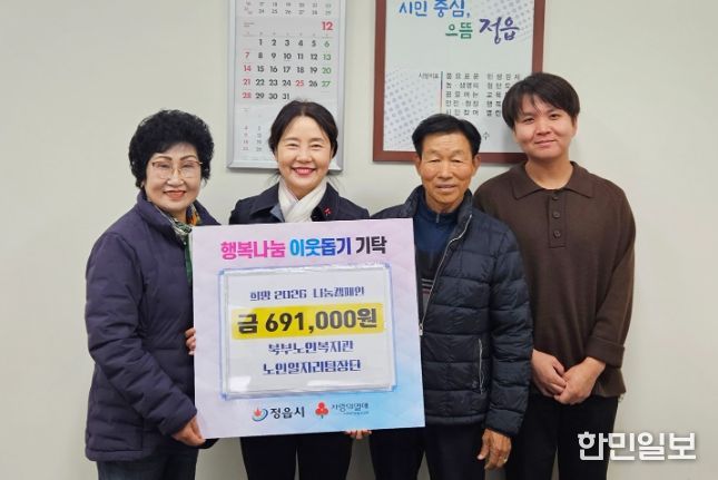 한민일보 서울포커스 김용택 기자 | 정읍시 북부노인복지관 노인일자리 팀장단(회장 윤향자)이 지역 사회의 어려운 이웃을 위해 따뜻한 나눔을 실천했다.