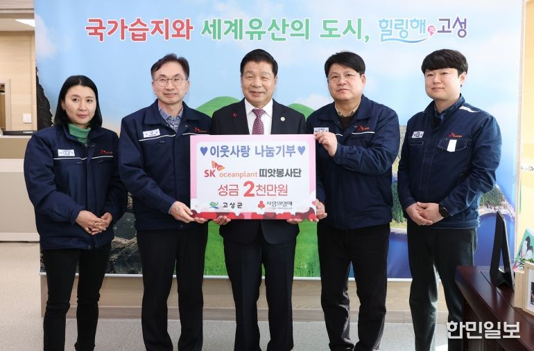 한민일보 서울포커스 김은금 기자 | 고성군은 sk오션플랜트 띠앗봉사단이 12월 17일 고성군을 방문해 관내 저소득층 지원을 위한 이웃돕기 성금 2,000만 원을 기탁했다고 밝혔다.