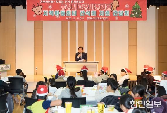 한민일보 서울포커스 김서윤 기자 | 통영시는 지난 17일 RCE세자트라센터에서 관내 12개소 지역아동센터 아동 100여 명과 통영시고향사랑기금으로 지원하고 있는 ‘지역아동센터 간식비 지원사업 간담회’를 개최했다.