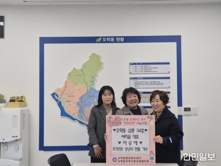 싸리골 이승애 대표는 오학동 지역사회보장협의체 위원으로 활동하면서, 지역 주민들의 복지 향상과 복지 사각지대 해소에 힘쓰고 있다. 이번 기부는 특히 겨울철을 맞아 경제적 어려움을 겪고 있는 주민들에게 큰 도움이 될 것으로 예상된다.