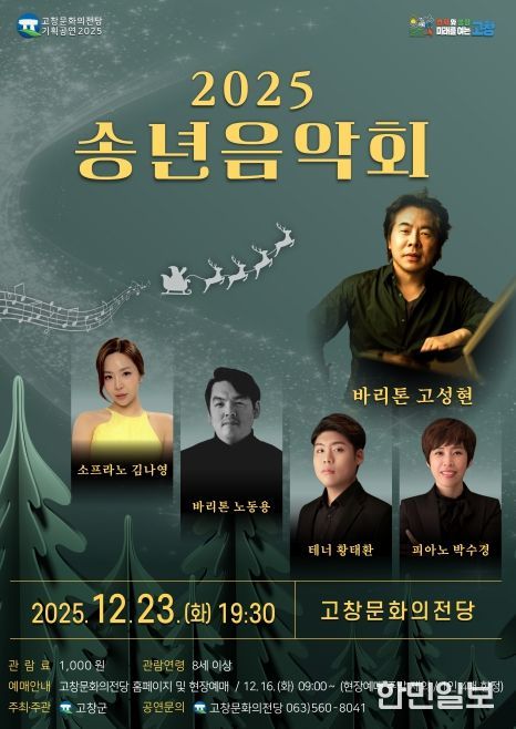 한민일보 서울포커스 박용남 기자 | 고창군이 오는 23일 저녁 7시30분 고창문화의전당에서 ‘2025년 송년음악회’를 연다.