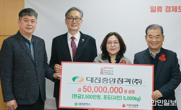 송미나 대전중앙청과(주) 대표이사는 “추운 겨울 어려운 이웃에게 따뜻한 마음과 희망이 전달되길 바란다”라며 “앞으로도 지역사회를 위한 환원에 앞장서겠다”라고 말했다.