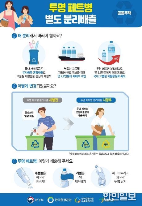 이 제도는 투명 페트병을 일반 플라스틱과 구분해 별도 배출함으로써 고품질 재활용품을 생산할 수 있도록 하는 정책이다.