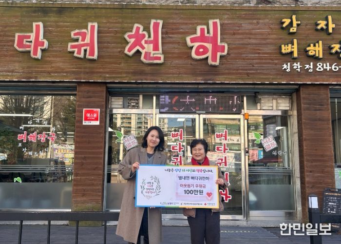 한민일보 서울포커스 김성윤 기자 | 남양주시는 지난 18일 별내면 소재 ‘뼈다귀천하’가 지역 내 취약계층 지원을 위해 후원금 100만 원을 별내면 지역사회보장협의체에 기탁했다고 밝혔다.