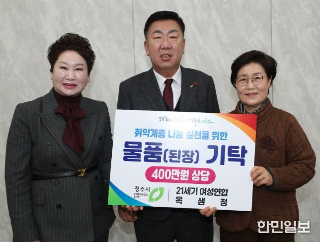 이범석 시장은 “경기침체로 힘든 시기에 취약계층을 위해 정성 가득한 된장을 준비해 주신 21세기 여성연합과 옥샘정에 감사드린다”면서 “도움이 꼭 필요한 곳에 모아주신 마음이 닿을 수 있도록 전달하겠다”고 답했다.