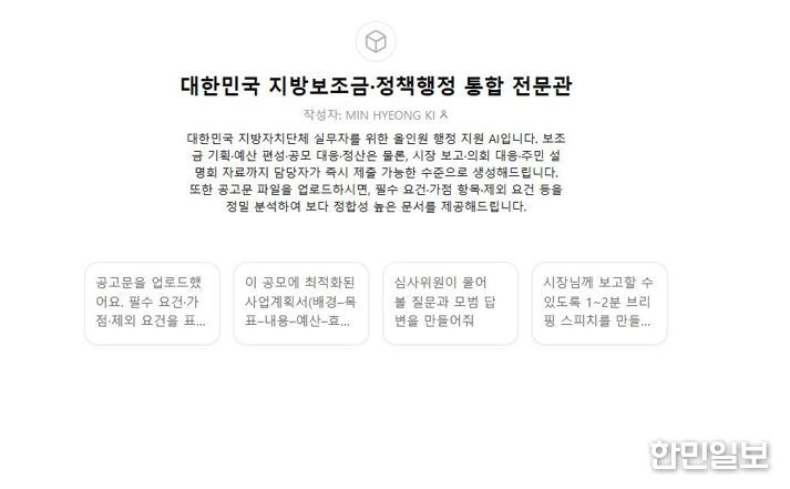 영예의 대상은 조양동주민센터 민형기 행정팀장이 차지했다. 민 팀장은 ‘대한민국 지방보조금 정책 행정 통합 전문관’ 작품을 통해 복잡한 지방보조금 업무를 AI로 통합 관리·효율화하는 모델을 제시해 심사위원들의 높은 평가를 받았다. 대상 수상자에게는 시장 표창과 함께 50만 원의 상금이 수여된다.