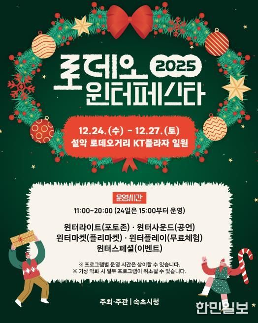 한민일보 서울포커스 임경복 기자 | 속초시가 12월 24일부터 27일까지 설악로데오거리 KT플라자 일원에서 ‘2025 로데오 윈터 페스타’를 개최한다.
