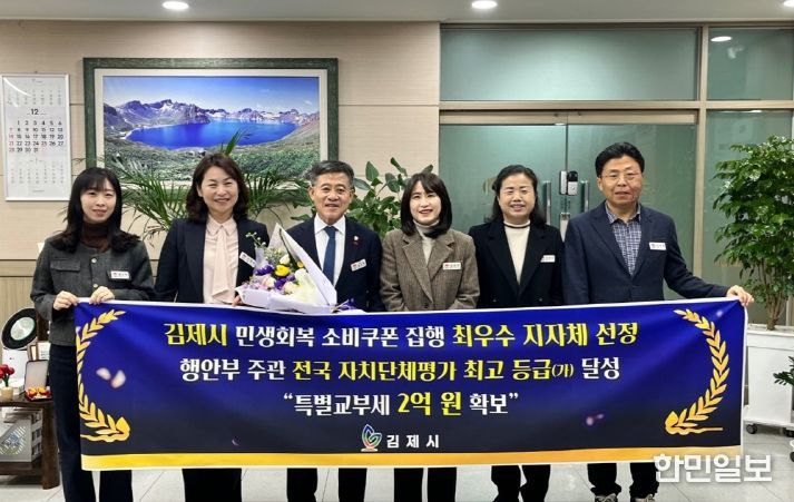 한민일보 서울포커스 박용남 기자 | 김제시는 243개 전국 자치단체를 대상으로 하는 행정안전부의 「민생회복 소비쿠폰」 집행 평가에서 기초 시(市) 부문 최고등급인 가등급을 획득하며 특별교부세 2억원을 확보했다고 밝혔다.