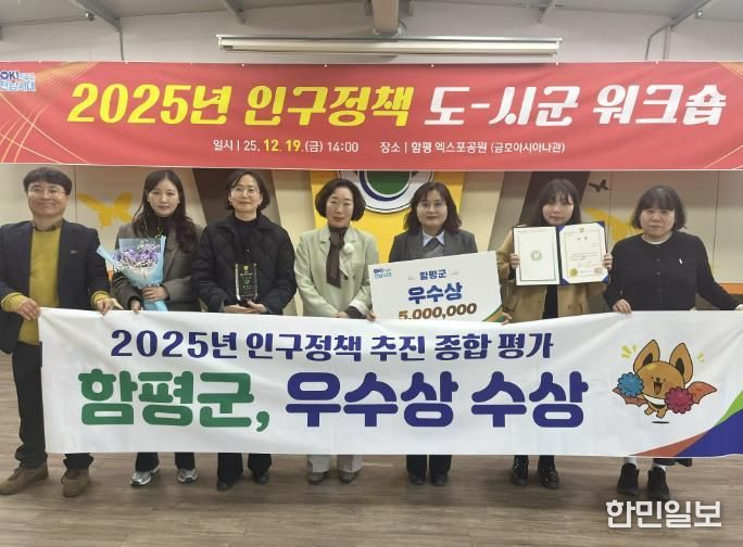 함평군은 전남도가 지난 19일 함평엑스포공원 금호아시아나관에서 개최한 ‘2025년 인구정책 종합평가’에서 우수상을 수상했다고 22일 밝혔다.