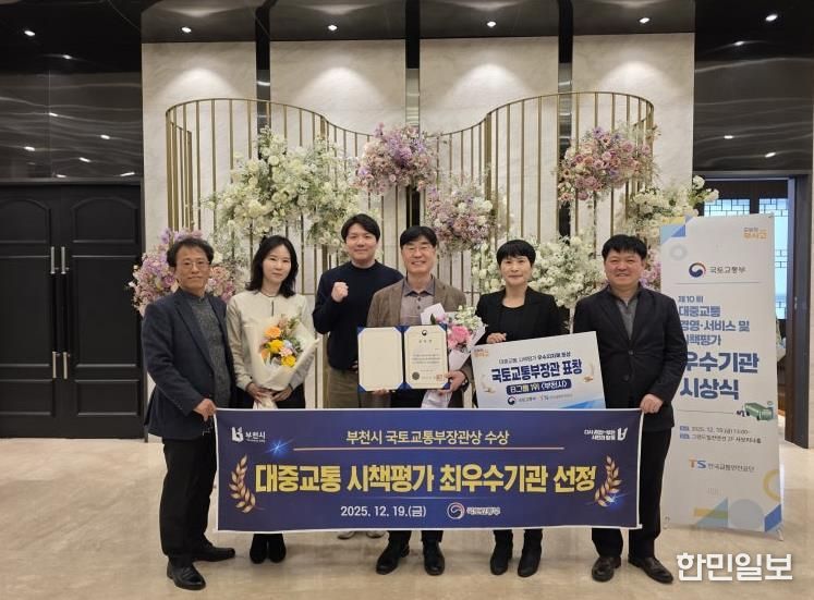 한민일보 서울포커스 김윤이 기자 | 부천시는 지난 19일 국토교통부가 실시한 ‘2025년 전국 대중교통 시책 평가’에서 처음으로 최우수기관에 선정돼 국토교통부 장관 표창을 받았다.