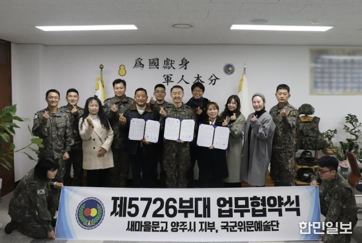 한민일보 서울포커스 임경복 기자 | 새마을문고 양주시지부는 지난 12월 19일, 육군 제5726부대에서 군 장병들의 독서문화 확산과 인문학적 소양 증진을 위한 업무협약(MOU)을 체결했다고 밝혔다.