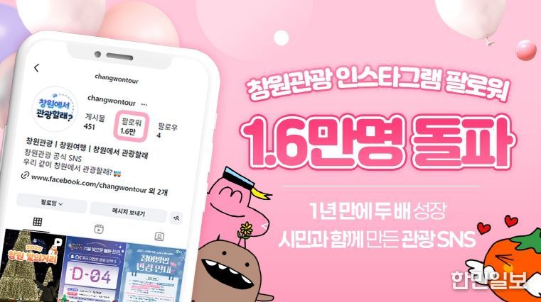 한민일보 서울포커스 김서윤 기자 | 창원특례시는 창원관광 공식 인스타그램 채널이 올해 말 기준 팔로워 수 1만 6,000명을 돌파하며, 지난해 연말 약 9천 명 대비 1년 만에 두 배 가까운 성장을 기록했다고 22일 밝혔다.