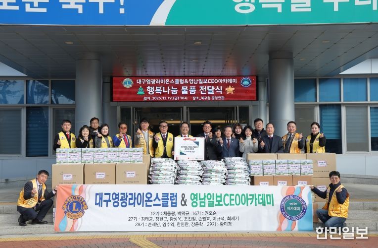 한편, 이번에 전달된 후원 물품은 북구청을 통해 관내 노인복지관과 종합복지관에 전달될 예정이며, 대구영광라이온스클럽과 영남일보 CEO아카데미는 향후에도 지역사회를 위한 봉사 및 후원 활동을 이어갈 예정이다.