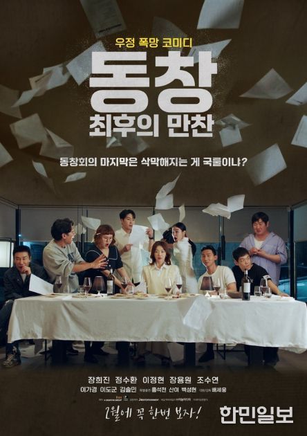 한편, 이번에 공개된 메인 포스터는 마치 레오나르도 다빈치의 명작 ‘최후의 만찬’을 떠올리게 하며 눈길을 사로잡는다. 흩날리는 종이와 함께 놀란 얼굴로 테이블에 둘러앉은 동창들의 모습이 호기심을 자극한다.