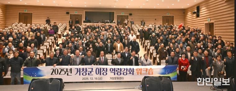 한민일보 서울포커스 김서윤 기자 | 거창군은 지난 19일 거창문화센터 공연장에서 구인모 군수, 신성범 국회의원, 이재운 군의회 의장, 박주언 문화복지위원장, 김일수 도의원, 군의원, 거창군 이장, 담당 공무원 등 300여 명이 참석한 가운데 ‘2025년 거창군 이장 역량강화 워크숍’을 성황리에 개최했다고 밝혔다.
