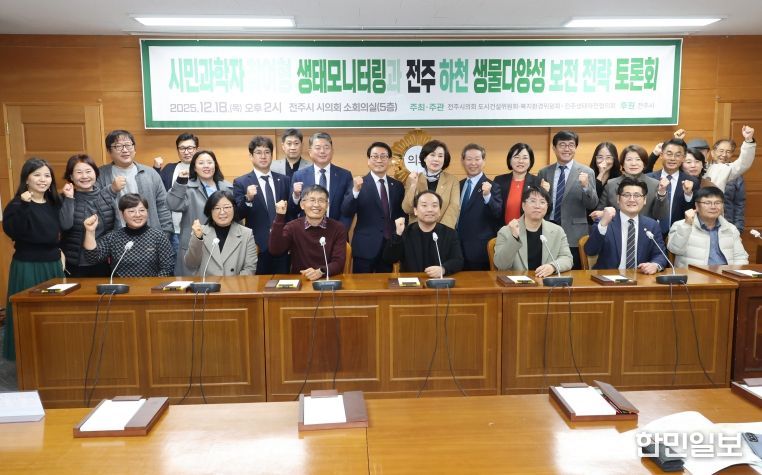 한민일보 서울포커스 김용택 기자 | 전주시의회는 지난 18일 의회 5층 소회의실에서 ‘전주 하천 생물다양성 보전 전략 토론회’를 열고 전주천·삼천 시민참여 생태모니터링 성과를 공유했다고 22일 밝혔다.
