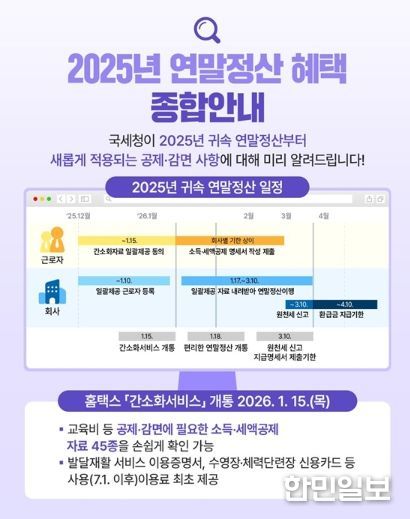 한민일보 서울포커스 임경복 기자 | ■ 2025년 연말정산 혜택 종합안내