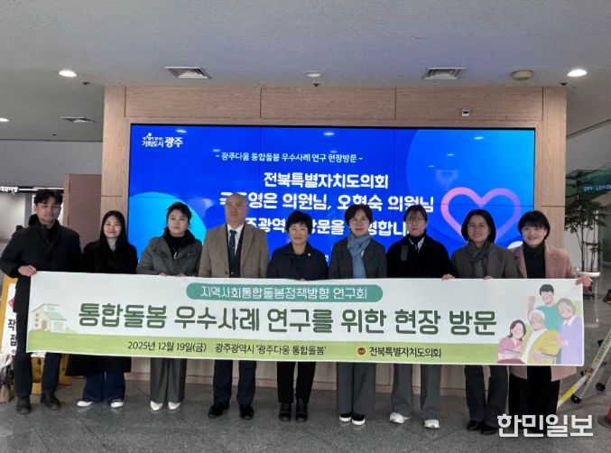 한민일보 서울포커스 임경복 기자 | 전북특별자치도의회 ‘지역사회통합돌봄정책방향 연구회’(국주영은 대표의원)가 지난 18일 지역사회 통합돌봄 선도 모델로 평가받는 광주광역시 ‘광주다움 통합돌봄’ 현장을 방문해 사례 연구를 실시했다.