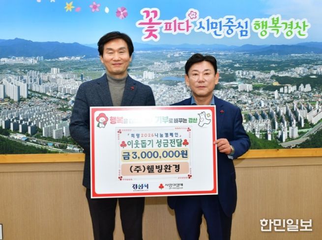 한민일보 서울포커스 임경복 기자 | 경산시는 ㈜웰빙환경(대표이사 박상희)이 12월 19일 이웃돕기 성금 및 인재 육성을 위한 장학금 총 500만 원을 기탁했다고 밝혔다.