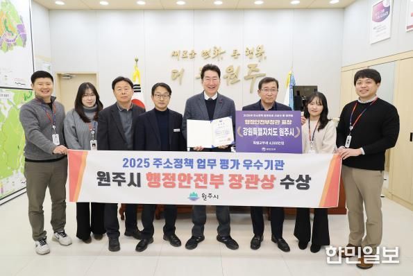 한민일보 서울포커스 임경복 기자 | 원주시는 최근 행정안전부가 주관한 ‘2025 주소정책 성과 공유 워크숍’에서 주소정책 업무 평가 우수 기관으로 선정돼, 행정안전부장관 표창을 수상하고 특별교부세 4천만 원을 확보했다.