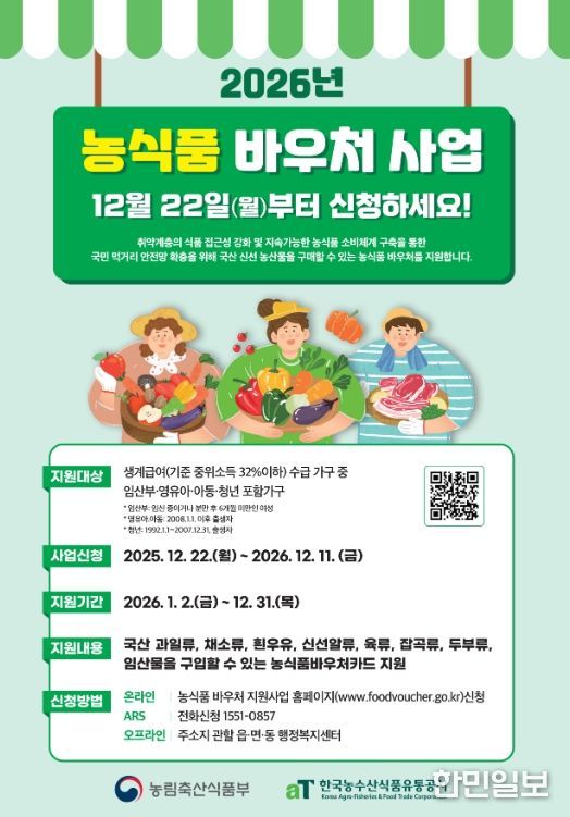 한민일보 서울포커스 임경복 기자 | 태백시는 지난 12월 22일부터 ‘2026년 농식품 바우처 지원사업’신청·접수를 시작했다고 밝혔다.