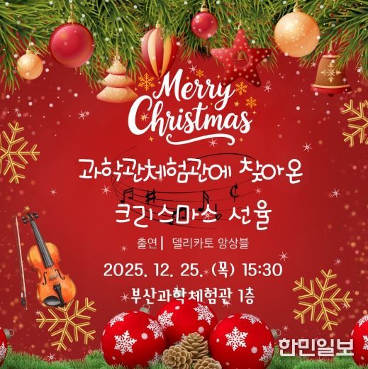 한민일보 서울포커스 임광현 기자 | 부산광역시교육청창의융합교육원(원장 한종환)은 오는 25일 동구 초량동 부산과학체험관에서 시민들을 대상으로 ‘현악 앙상블 크리스마스 특별 음악회’를 개최한다.