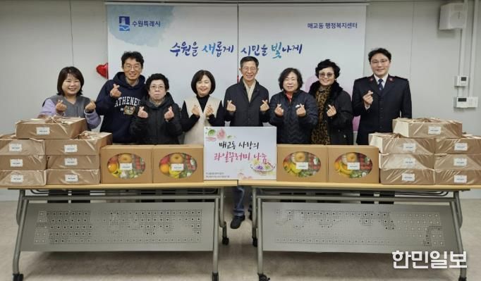 한민일보 서울포커스 진광성 기자 | 수원시 팔달구 매교동과 매교동 지역사회보장협의체는 지난 22일 지역 내 중장년 취약계층 20가구에 제철 과일들로 구성된 사랑의 과일꾸러미를 제공했다.