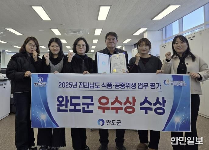 한민일보 서울포커스 박용남 기자 | 완도군은 전라남도에서 실시한 '2025년 식품·공중위생 업무 평가'에서 ‘우수상’을 수상했다.