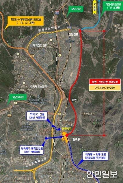 한민일보 서울포커스 유한희 기자 | 대전시는 대덕구 연축동~신탄진 용정초교를 잇는 ‘와동~신탄진동 도로개설사업’이 22일 기획재정부 재정사업평가위원회 심의를 거쳐 예비타당성조사 대상사업으로 선정됐다.