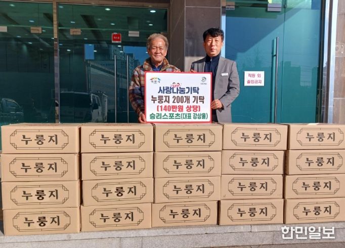 한민일보 서울포커스 박용남 기자 | 장호원읍은 지난 22일, 승리스포츠(대표 강상율)가 누룽지 200개를 기탁했다고 밝혔다.