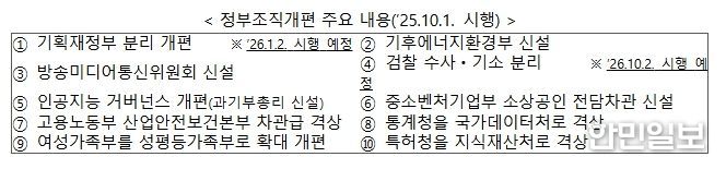 먼저, 정부조직개편은 특정 부처에 집중된 기능과 권한을 재배치하고, 기후 변화, AI 대전환 등 미래 위기에 선제적으로 대응하기 위해 기획재정부 분리 개편, 기후에너지환경부 신설 등을 중심으로 추진했다.