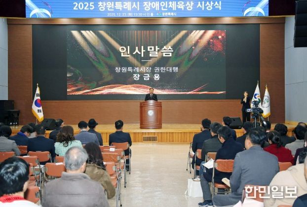 한민일보 서울포커스 김서윤 기자 | 창원특례시는 23일 시청 시민홀에서 ‘2025 창원특례시 장애인체육상 시상식’을 개최했다.