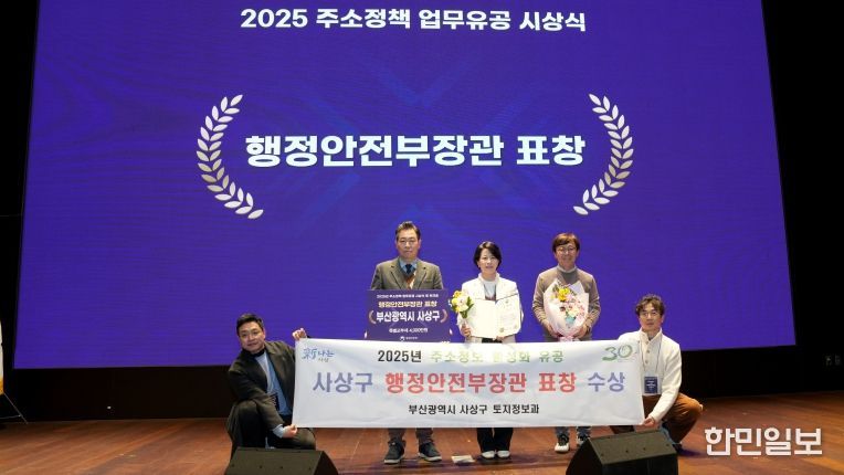 한민일보 서울포커스 임광현 기자 | 부산 사상구는 지난 18일 행정안전부 주관 ‘2025년 주소정책 성과공유 워크숍’에서 주소정보 업무평가 우수기관으로 선정돼 행정안전부 장관 표창을 수상하고, 특별교부세 4천만 원을 확보했다고 밝혔다.