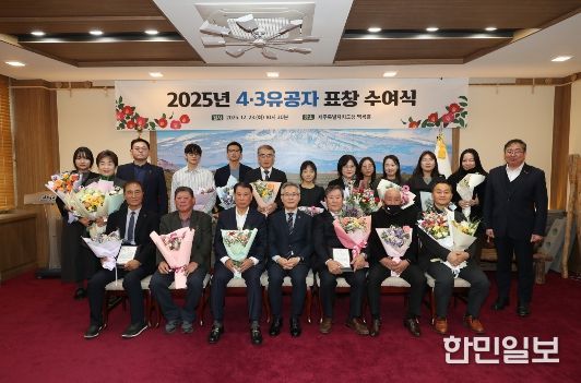 한민일보 서울포커스 임경복 기자 | 진명기 행정부지사는 23일 오전 10시30분 도청 백록홀에서 ‘2025년도 4·3유공자 표창 수여식’을 개최하고 제주4·3진상규명 및 4·3희생자 및 유족 명예회복 등에 기여한 도민과 공무원 22명에게 도지사 표창을 수여했다.