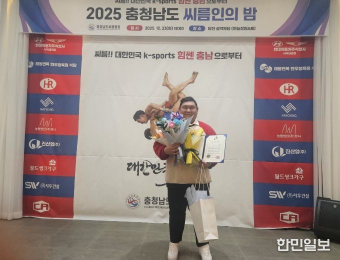 한민일보 서울포커스 임경복 기자 | 지난 23일 충남 당진시 A웨딩홀에서 열린 '2025년 충남 씨름인의 밤' 행사에서 청양초등학교 김민규(38) 씨름 감독이 충남교육감 표창을 수상하며 큰 주목을 받았다.