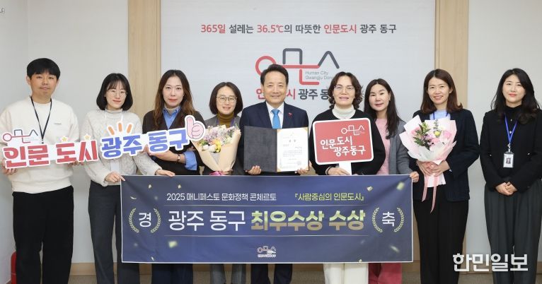 한민일보 서울포커스 임경복 기자 | 광주 동구는 2025 매니페스토 문화정책 콘체르토에서 ‘문화활동 활성화 분야’ 최우수상을 최근 수상했다고 밝혔다. 수상 사례는 ‘365일 36.5℃ 인문도시 광주 동구’ 정책이다.