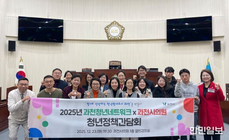 한민일보 서울포커스 최성훈 기자 | 과천시는 지난 23일 과천시의회 열린강좌실에서 과천청년네트워크와 과천시의회 의원이 참석한 가운데 ‘함께 성장하는 청년참여도시 과천을 만들다, 2025년 과천시 청년정책 발전을 위한 청년정책간담회’를 개최했다고 밝혔다.