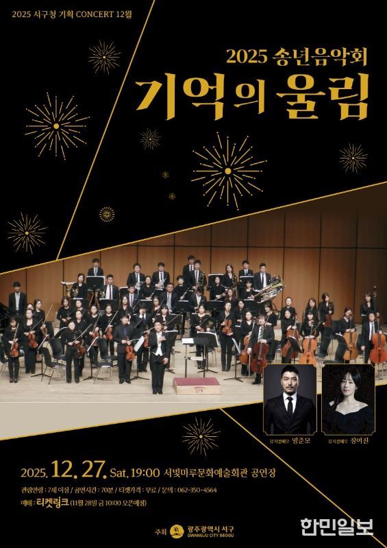 한민일보 서울포커스 임경복 기자 | 광주광역시 서구는 2025년 한 해를 마무리하며 오는 27일 오후7시 서빛마루문화예술회관에서 송년음악회 ‘기억의 울림’을 개최한다.