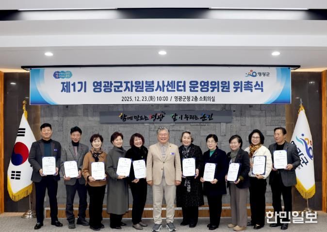 한민일보 서울포커스 박용남 기자 | 영광군은 12월 23일 영광군청 2층 소회의실에서 26년부터 운영될 제1기 영광군자원봉사센터 운영위원회 위원 위촉식을 가졌다고 밝혔다.
