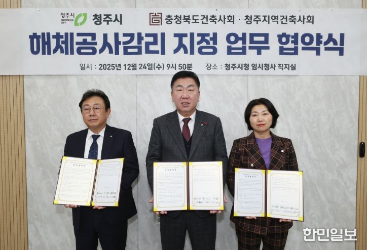 한민일보 서울포커스 김다남 기자 | 청주시는 24일 대한건축사협회 충청북도건축사회, 청주지역건축사회와 ‘건축물 해체공사 감리자 지정 업무대행에 관한 업무협약(MOU)’을 체결한다.