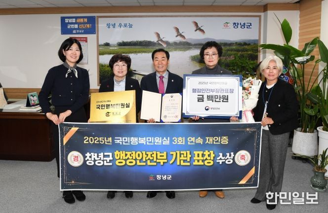 한민일보 서울포커스 김은금 기자 | 창녕군은 정부세종청사에서 열린 ‘2025년 민원행정발전 유공 시상식’에서 국민행복민원실 인증 분야 행정안전부 장관 기관 표창을 수상했다.