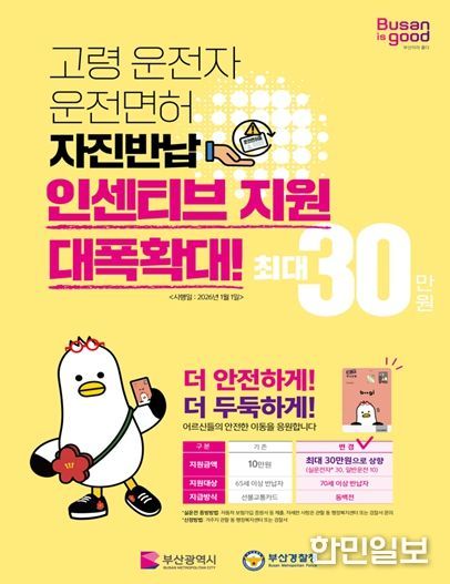 한민일보 서울포커스 임광현 기자 | 부산시는 안전이 우선되는 사람 중심의 교통안전 환경을 조성하기 위하여 고령자와 사업용 차량의 안전관리 강화에 집중하는 '맞춤형 안전대책'으로 다양한 신규사업들을 추진한다고 밝혔다.
