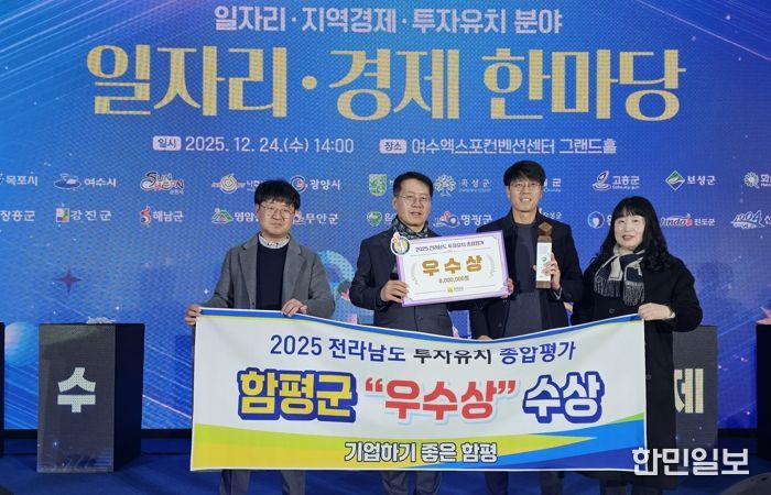 함평군은 지난 24일 전남도 주관 ‘2025년 전라남도 투자 유치 종합평가’에서 우수상을 수상했다고 25일 밝혔다.