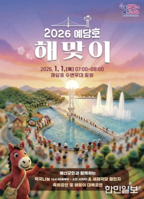 한민일보 서울포커스 임경복 기자 | 예산문화원은 2026년 병오년 ‘붉은 말의 해’를 맞아 오는 1월 1일 오전 7시부터 예당호 수변무대 일원에서 ‘2026 예당호 해맞이 행사’를 개최한다.