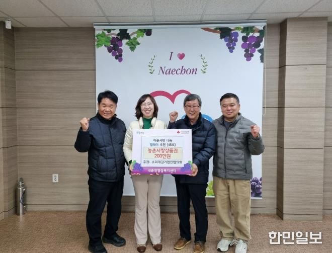 한민일보 서울포커스 심기옥 기자 | 포천시 내촌면 행정복지센터는 지난 24일 소리개길기업인협의회가 농촌사랑상품권 200만 원 상당을 경기 사회복지공동모금회에 기탁하며 ‘이웃사랑 나눔 릴레이 48호’에 동참했다고 밝혔다.