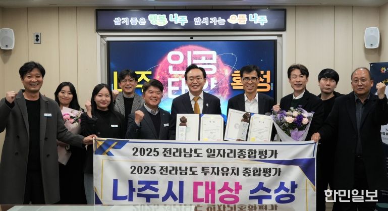 나주시는 지난 24일 여수엑스포컨벤션센터에서 열린 ‘2025년 전라남도 일자리·경제 한마당’ 행사에서 일자리 창출과 투자유치 2개 부문에서 각각 최고상인 ‘대상’을 수상했다고 26일 밝혔다.