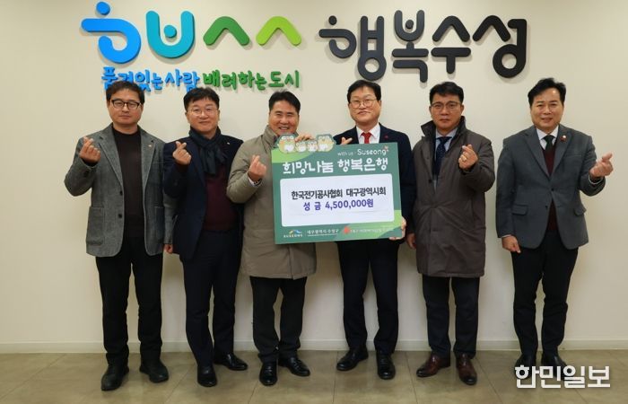 한민일보 서울포커스 임경복 기자 | 한국전기공사협회 대구광역시회는 지난 26일 관내 어려운 이웃을 위해 성금 450만 원을 수성구청에 전달했다.