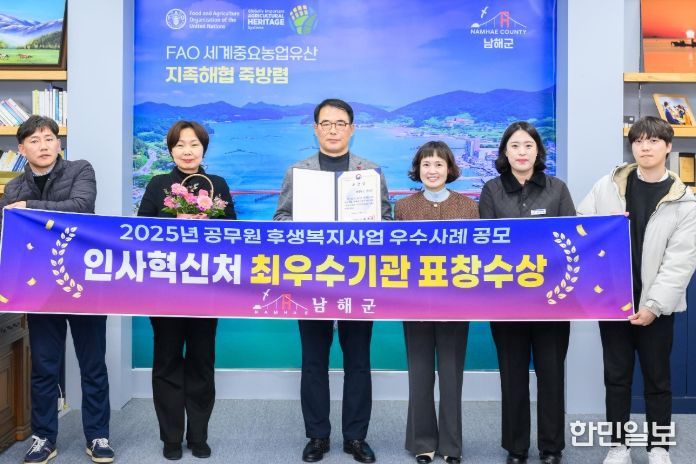 한민일보 서울포커스 김서윤 기자 | 남해군이 인사혁신처장이 주최한 2025년 공무원 후생복지 우수사례 공모에서 전국 최우수 기관으로 선정됐다.