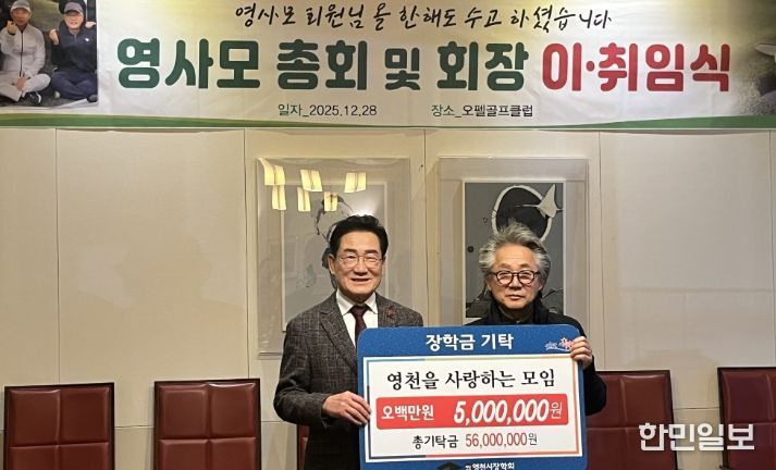 한민일보 서울포커스 김봉순 기자 | 영천시는 지난 28일 영사모(영천을 사랑하는 모임)가 500만원, 29일에는 신녕농업협동조합 500만원, 신녕면 이장협의회 102만원의 장학금을 영천시장학회에 기탁했다고 밝혔다.