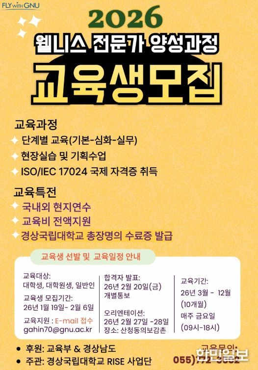 모집 대상은 경상국립대학교 소속 대학생, 대학원생과 일반인이며, 모집 기간은 2026년 1월 19일부터 2월 6일까지다.